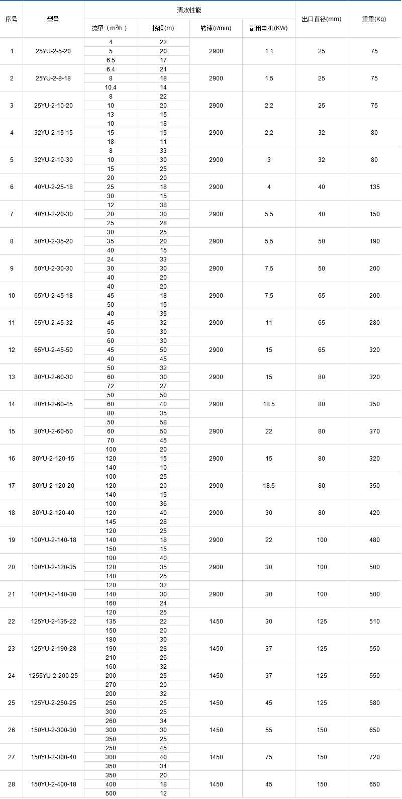 YU—2系列耐腐耐磨液下泵,其過流部件采用性能優(yōu)異的超高分子量聚乙烯(UHMWPE),整體模壓而成。該材料被稱為國際上最新穎的泵用耐腐耐磨工程塑料,其最突出的特點是:在所有的工程塑料中,它具有最優(yōu)異的耐磨性、耐沖擊性、抗蠕變性。