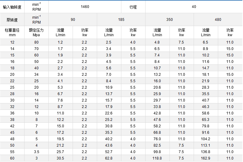 ◆ 你選型時(shí)表中流量不合適,可用電磁調(diào)速,變頻調(diào)速,變換柱塞直徑來調(diào)節(jié)流量,滿足選型需要。