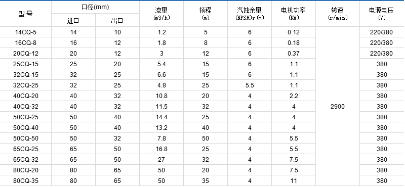 CQ型磁力泵特點